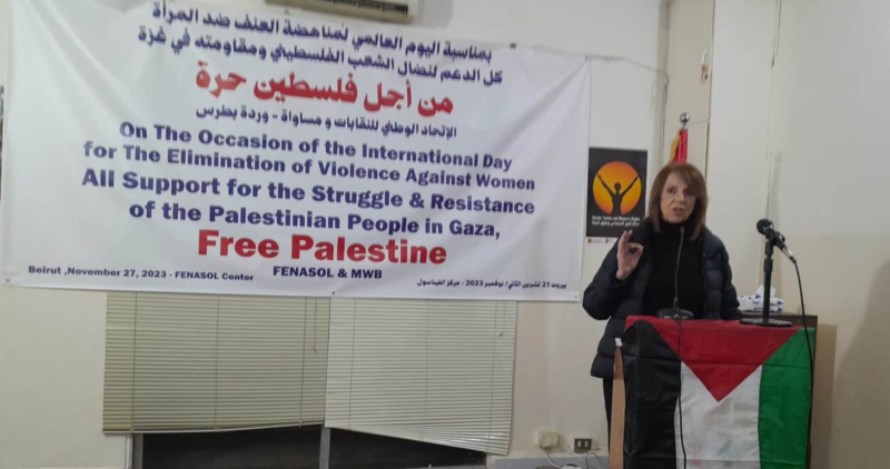الاتحاد الوطني للنقابات وجمعية مساواة- وردة بطرس نظما لقاءً تضامنياً مع الشعب الفلسطيني ومقاومته