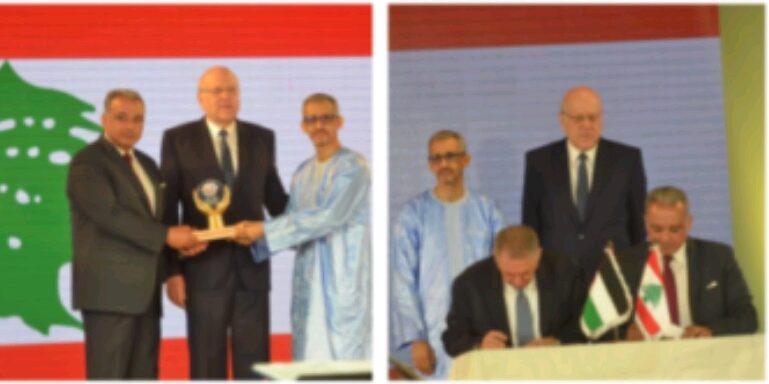 بعد ذلك ازاح الرئيس ميقاتي والمدير العام ولد اعمر و المرتضى و سلام ورئيس مجلس ادارة معرض رشيد كرامي الدولي أكرم عويضة اللوحة التذكارية للمناسبة .