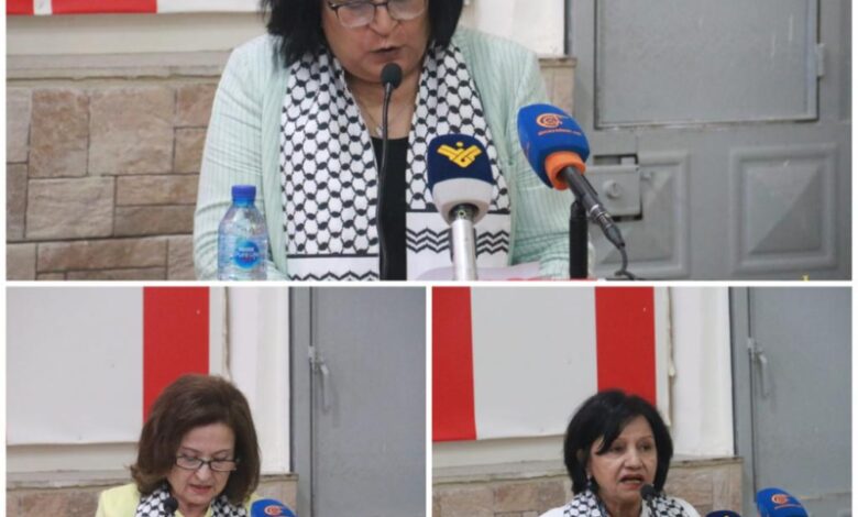 واعتبرت ان التطبيع مع حكومة الاحتلال اليمينية يشكل غطاء لعدوانيتها ضد الشعب الفلسطيني في ظل مواصلة الاحتلال لسياسة التطهير والتمييز العرقي والتوسع الاستيطاني، مؤكدة على ضرورة تعزيز مشاركة المرأة الفلسطينية في صنع القرار وفي الحياة السياسية والعامة على قدم المساواة في اطار آليات التغيير الديمقراطي في المجتمع.