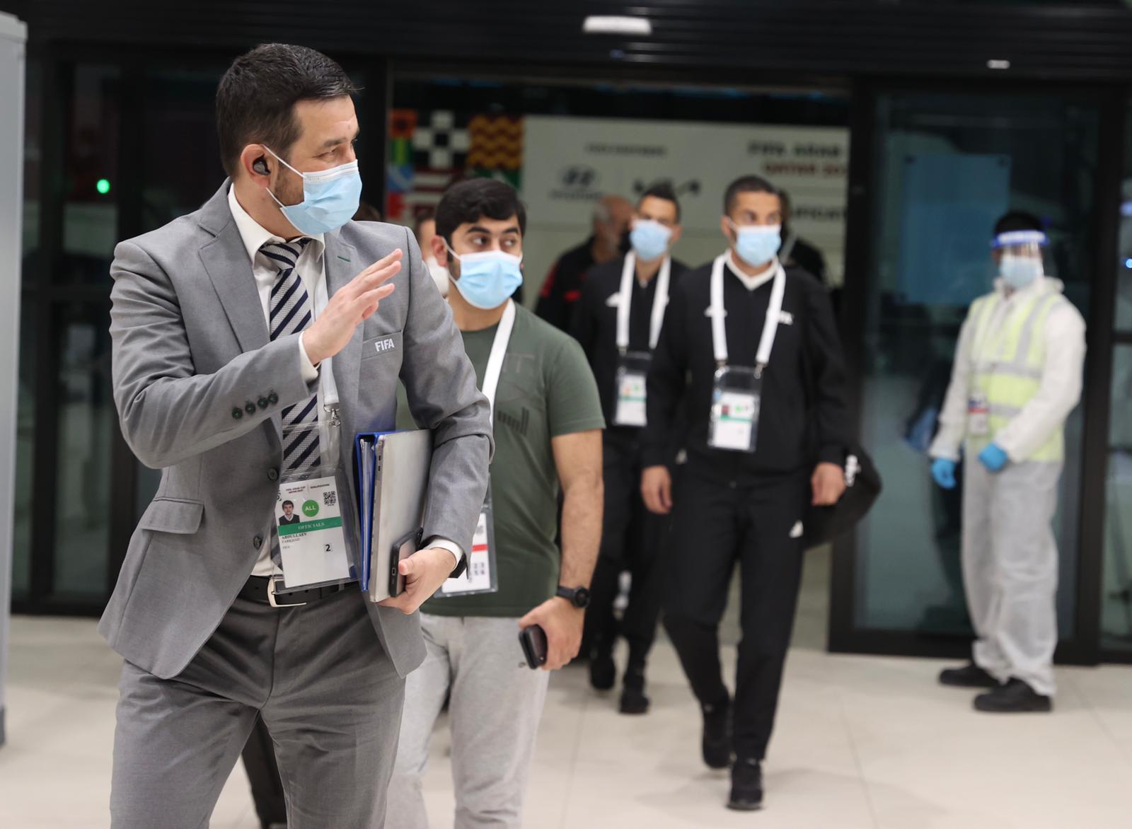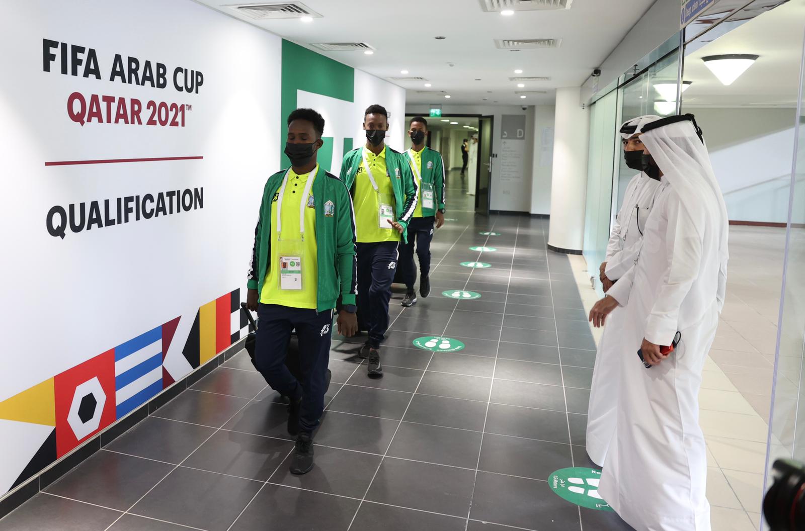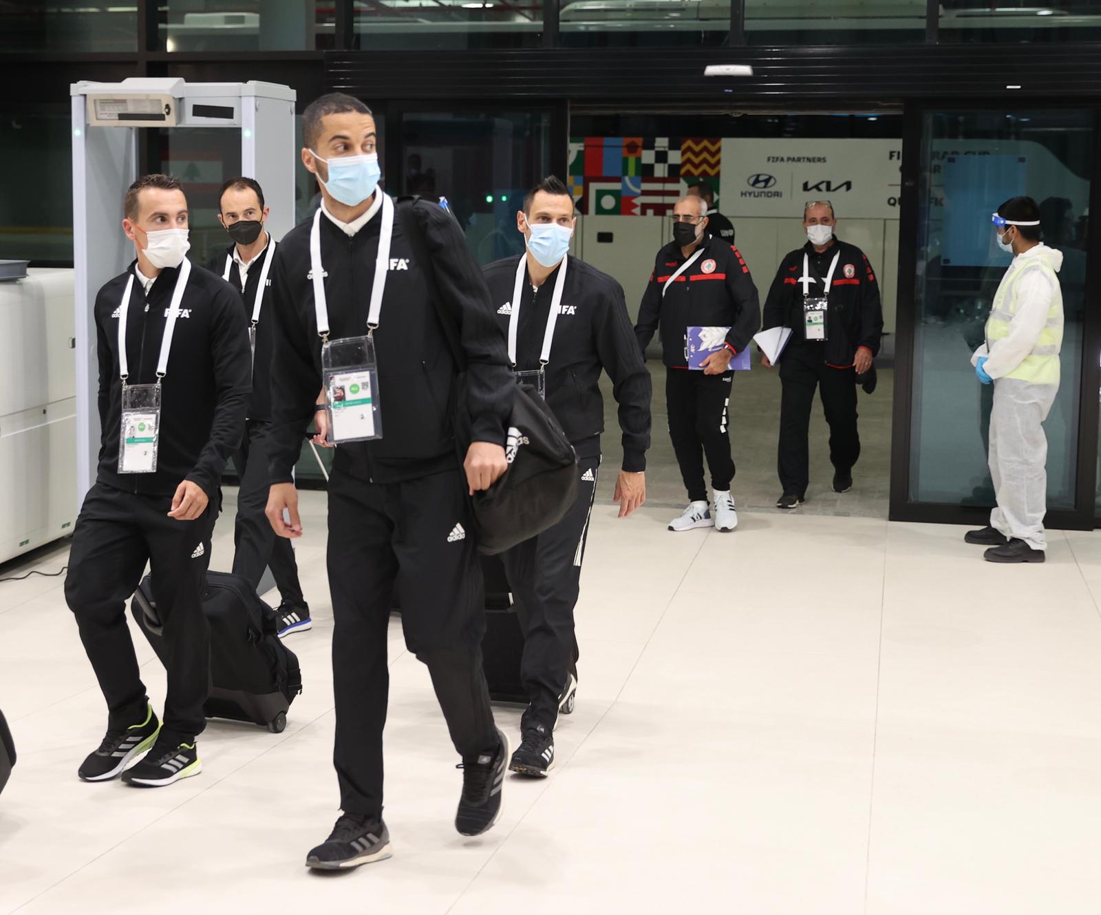 وصول منتخب لبنان لكرة القدم إلى ملعب خليفة الدولي في الدوحة للقاء نظيره الجيبوتي في تصفيات كاس العرب فيفا قطر .