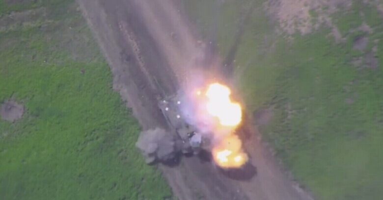 وتظهر في الفيديو الثاني مسيّرة انتحارية روسية من طراز “لانسيت” وهي تنقض على دبابة “ليوبارد” ألمانية وتدمرها بضربة مباشرة من دون تحديد المكان.
