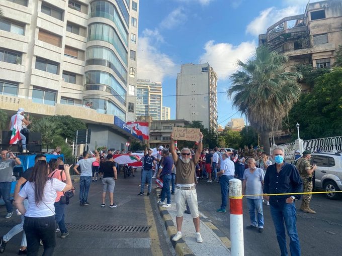 ونظم عدد من المحتجين وقفة أمام مصرف لبنان، في ظل اجراءات أمنية مشددة، منددين بالسياسة المالية والاقتصادية المتبعة، التي أدت الى الانهيار وتردي الاوضاع الاجتماعية على مختلف الصعد، وبعدما أنهى المحتجون الوقفة ساروا في تظاهرة باتجاه الشارع الرئيسي في منطقة الحمرا.