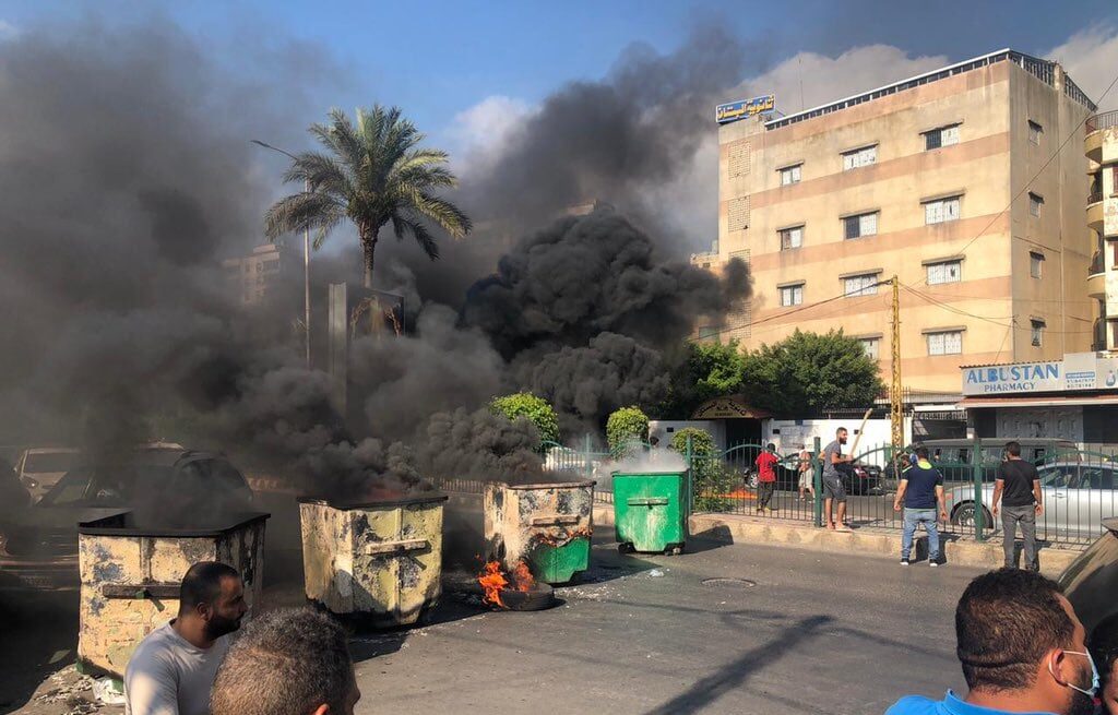 احتجاجاً على تردي الأوضاع المعيشية في لبنان، شهدت مختلف المناطق اللبنانية تحركات احتجاجية وقطع طرقات، حيث عمد المحتجون على قطع طريق المدينة الرياضية بالإطارات المشتعلة ومستوعبات النفايات.
