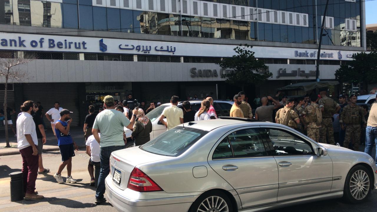وفي مدينة صيدا اغلق المحتجون محال الصيرفة وقطعوا شارع المصارف وأغلقوا ساحة النجمة، وتقاطع ايليا، وتم قطع الطريق عند ساحة الشهداء في صيدا بالاطارات المشتعلة.