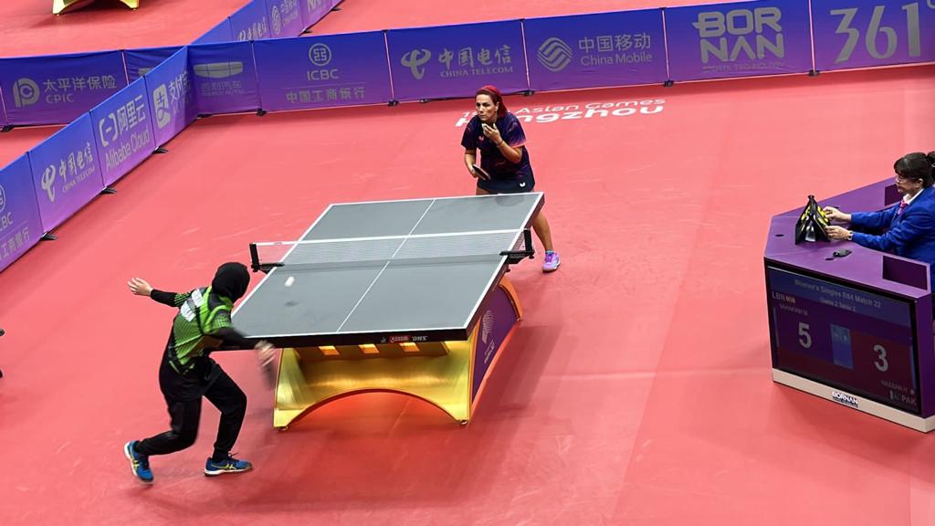 تواصلت منافسات البعثة اللبنانية في دورة الألعاب الآسيوية التاسعة عشرة المقامة في مدينة هانغزو الصينية حيث إقتصر برنامج اليوم الأربعاء على مسابقة كرة الطاولة لفئة الفردي وخاضت اللاعبة ماريانا سهاكيان المباراة مع اللاعبة الباكستانية هايكا حسن وفازت عليها بنتيجة مريحة 4 – 1 وبواقع أشواط 11 – 5 / 12 – 10 / 11 – 7 / 11 – 13 / 11 – 8 وبذلك تأهلت للدور الثاني حيث تلتقي غداً لاعبة كورية جنوبية مصنفة رقم 12 على مستوى العالم .