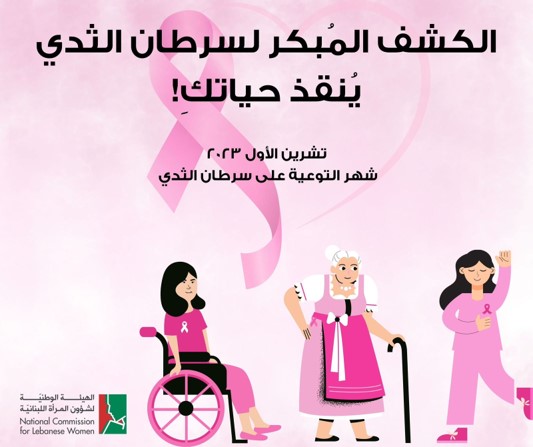 أطلقت الهيئة الوطنية لشؤون المرأة اللبنانية حملة توعوية تحمل شعار “الكشف المبكر لسرطان الثدي ينقذ حياتكِ”، وذلك تزامناً مع الحملات التوعوية العالمية حول سرطان الثدي في شهر تشرين الأول من كل عام.