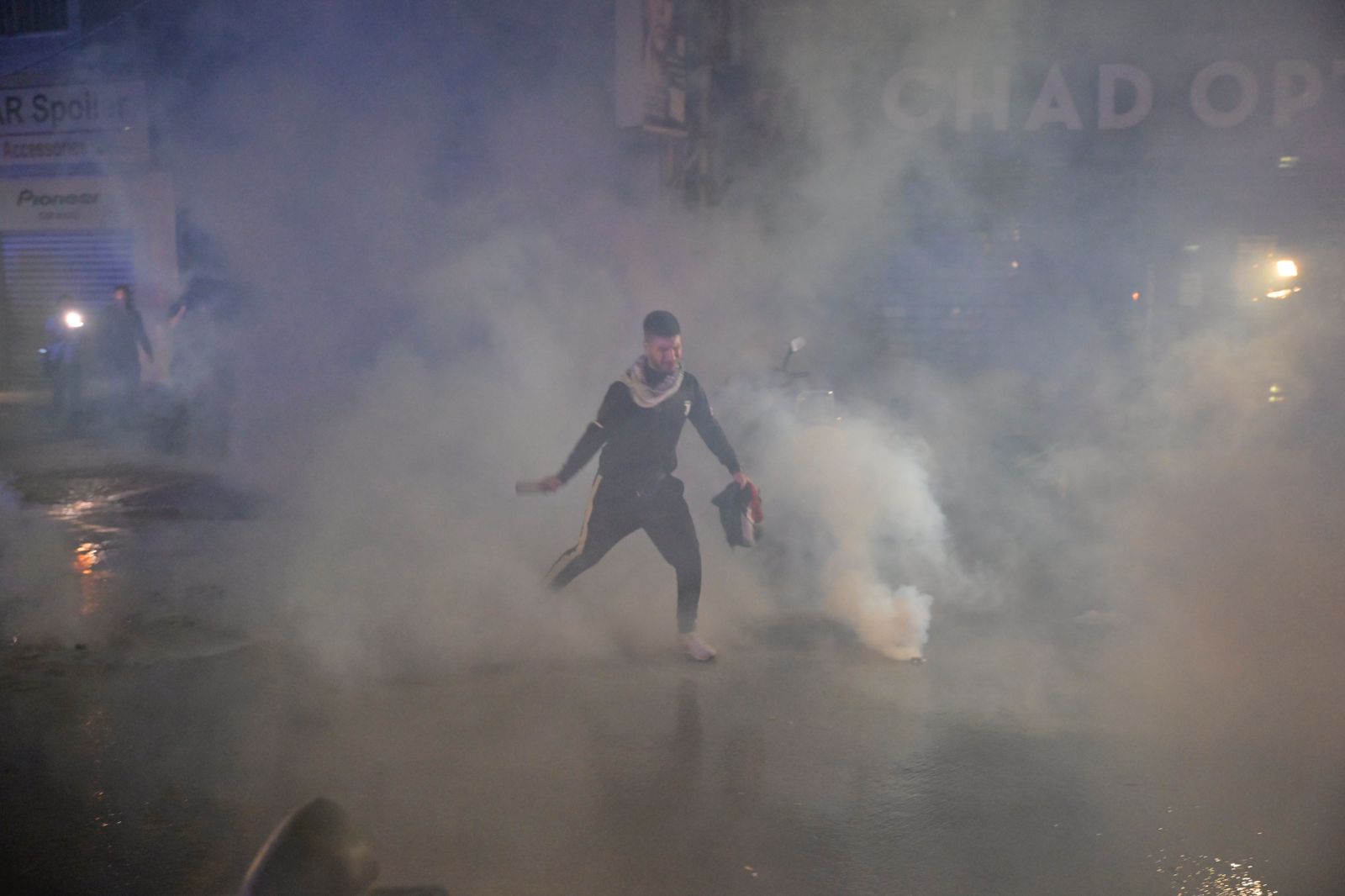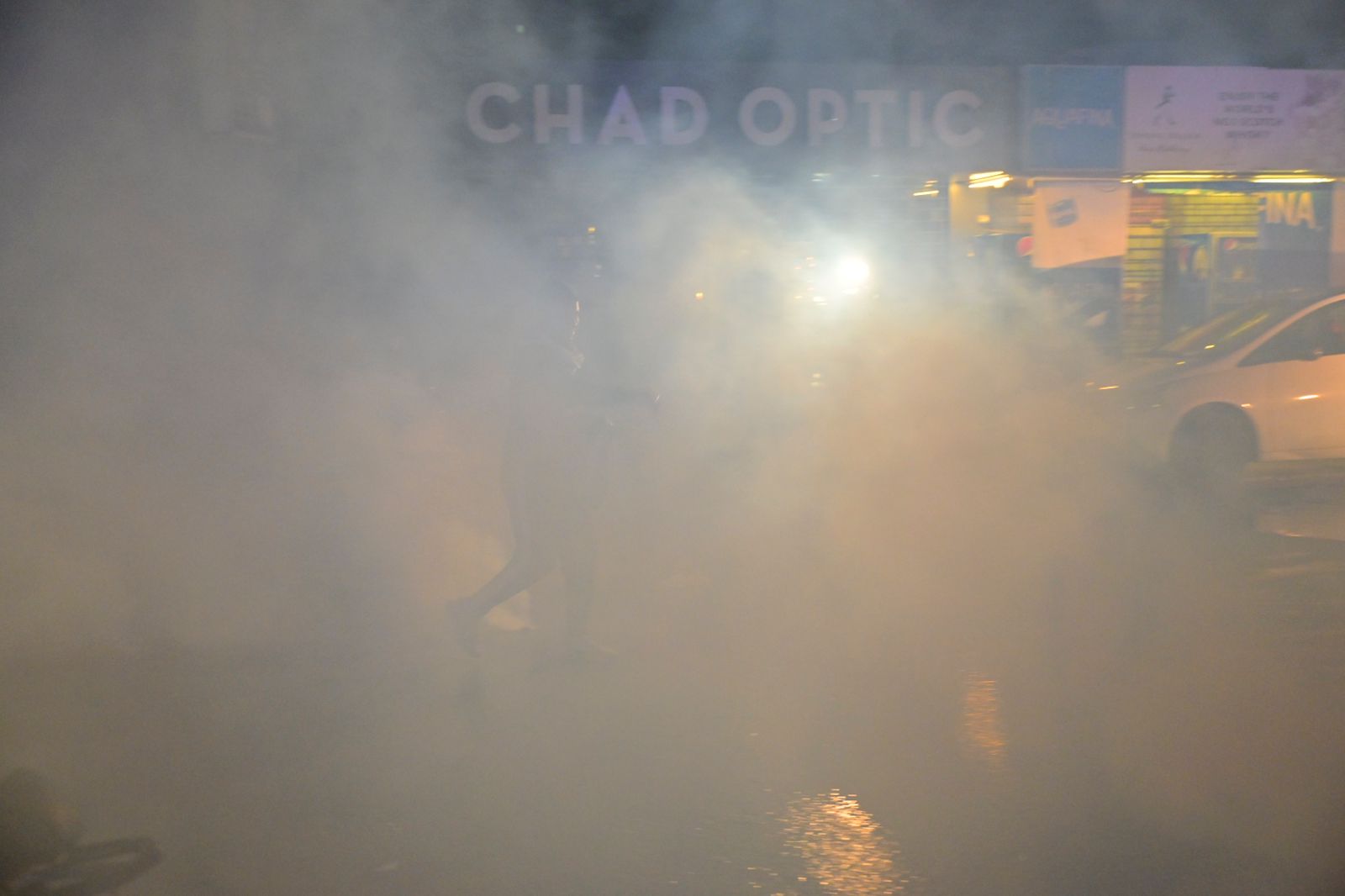 قنابل غازية ألقيت باتجاه المحتجين في عوكر. تصوير نبيل اسماعيل.
