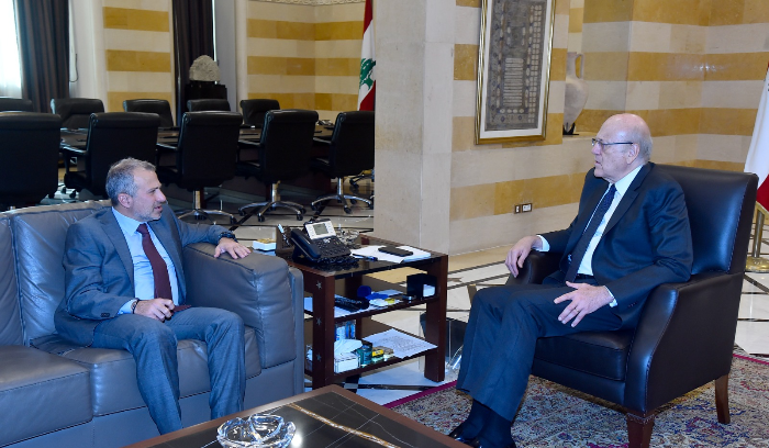 وبهذا الخصوص زار النائب جبران باسيل رئيس الحكومة نجيب ميقاتي في السرايا الحكومي، حيث تباحثا في الاوضاع المحلية والإقليمية.