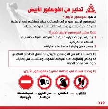– اتباع تعليمات وزارة الصحة العامة ومنظمة الصحة العالمية المتعلقة بالتعامل مع الفوسفور الأبيض.