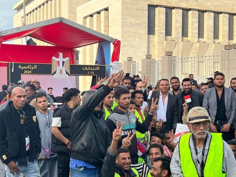 سطر رجال مجموعة بيراميدز للتطوير من مهندسين وإداريين وموظفين وعمال ملحمة كبرى في اليوم الأول للانتخابات الرئاسية في مصر بقيادة المهندس هشام الخولي رئيس مجلس إدارة المجموعة.