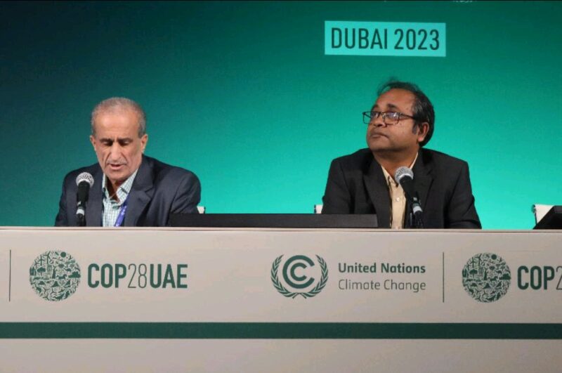 وأضاف خلال جلسة عمل عقدت في دبي بمشاركة دولة فلسطين وبنما وبنغلاديش، ضمن فعاليات مؤتمر الأطراف 28 لتغير المناخ، أن مشاركتنا به هو لإيصال صوت فلسطين إلى العالم.