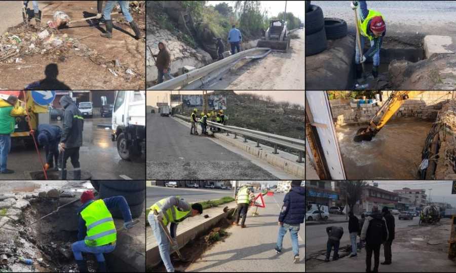 جال المدير العام للطرقات والمباني في وزارة الأشغال العامة والنقل علي حب الله، برفقة المعنيين في الوزارة، وبتوجيهات من وزير الأشغال العامة والنقل في حكومة تصريف الأعمال علي حمية، وقبل وصول المنخفض الجوي الى لبنان، على مختلف ورش متعهدي الوزارة المستمرة في القيام بأعمال تعزيل وتنظيف مجاري تصريف مياه الأمطار على الأوتوسترادات والطرقات الرئيسة المحددة ضمن نطاق صلاحيات الوزارة، ولا سيما منها على النقاط الحمراء المشخصة من قبل الوزارة.