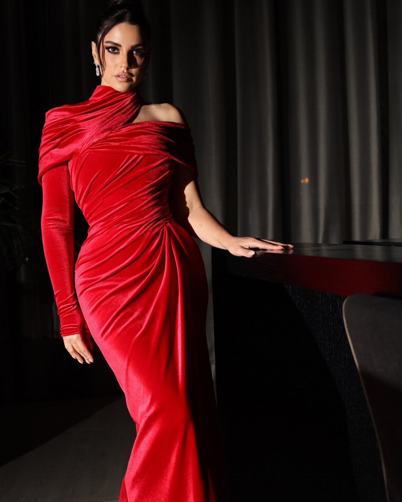 وإرتدت درة فستاناً أحمر اللون من المخمل من تصميم اللبناني انطوان قارح، ومجوهرات من معوض، وكوافير ماسيمو حالا وماكياج منى جمال وشارليت طيبوري.