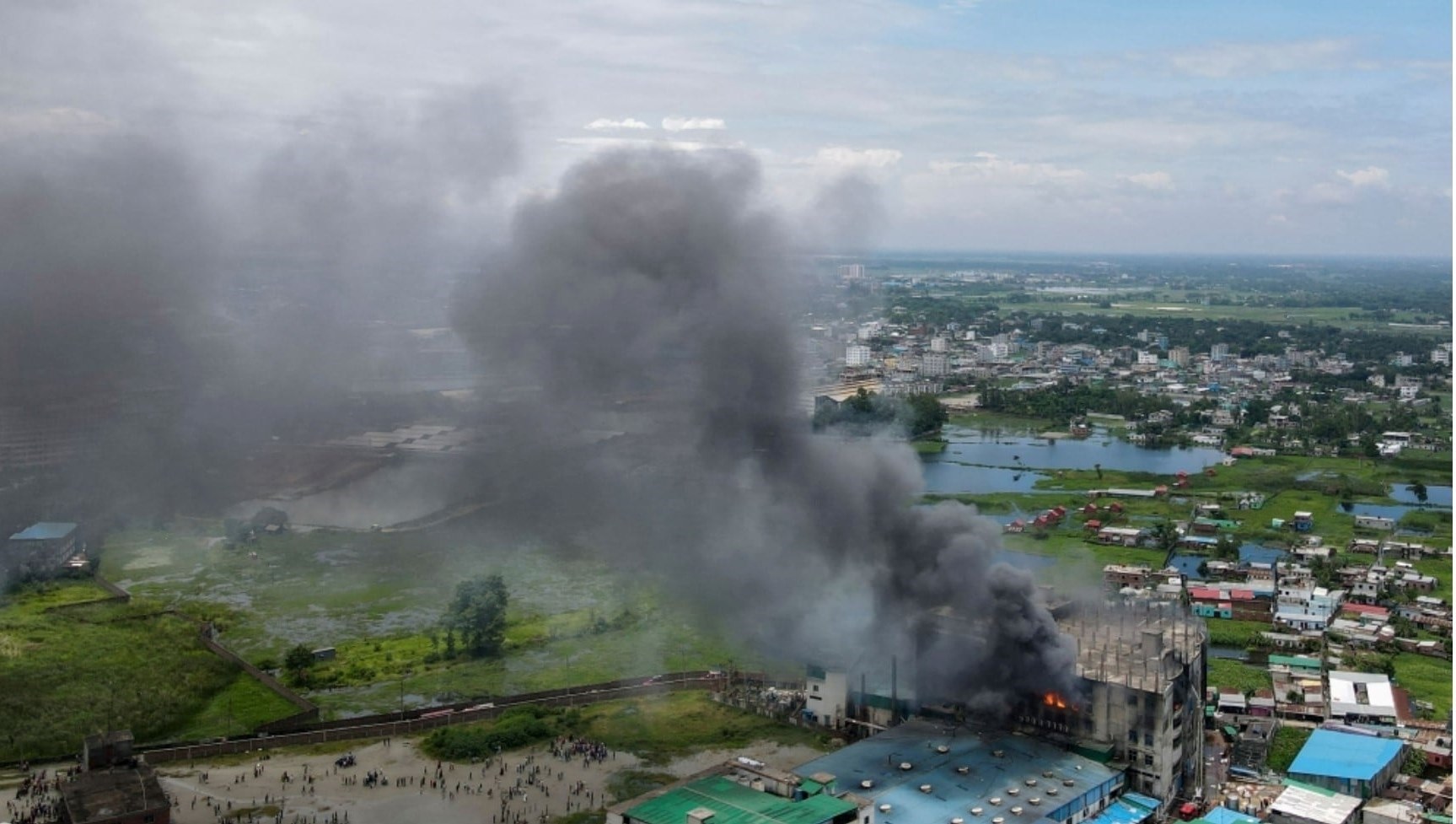 وقالت الشرطة وشهود عيان إن الحريق اندلع حوالى الساعة 17,00 (11,00 ت غ) الخميس في مصنع “هاشم فود اند بيفيريج” (هاشم للأغذية والمشروبات) الذي يشغل مبنى من ستة طوابق في روبغانج البلدة الصناعية القريبة من دكا.