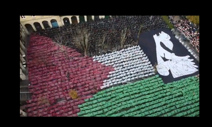 أهالي غرنيكا الإسبانية يدعمون فلسطين بأجسادهم