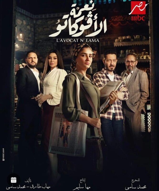 مسلسل “نعمة الأفوكاتو” بطولة مي عمر وأحمد زاهر وأروى جودة وكمال أبو ريه، وعماد زيادة وياسر على ماهر وولاء الشريف وأحمد ماجد ومحمد الدسوقي وطارق النهري وسامي مغاوري زلبنى ونس، غادة فلفل وسلوى عثمان وهدير عبدالناصر، وتأليف محمد سامي ومهاب طارق وإخراج محمد سامي وإنتاج شركة Forever Drama – مها سليم.