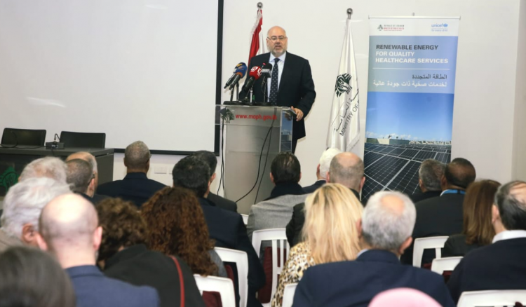 رعى وزير الصحة العامة في حكومة تصريف الاعمال الدكتور فراس الأبيض تدشين نظام الطاقة الشمسية المقدم من اليونيسف لمبنى الوزارة، في حفل حضره ممثل منظمة اليونيسف في لبنان إدوارد بيجبيدير وممثل منظمة الصحة العالمية الدكتور عبد الناصر أبو بكر وعدد من الشركاء.