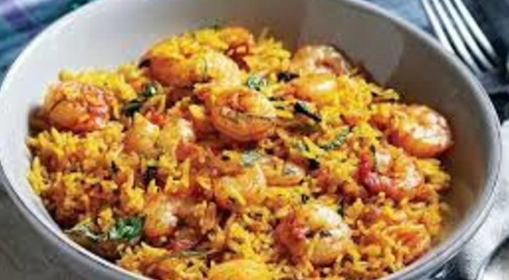 الأرز بالقريدس والكاري لهواة المأكولات البحرية وهذه طريقة تحضيره