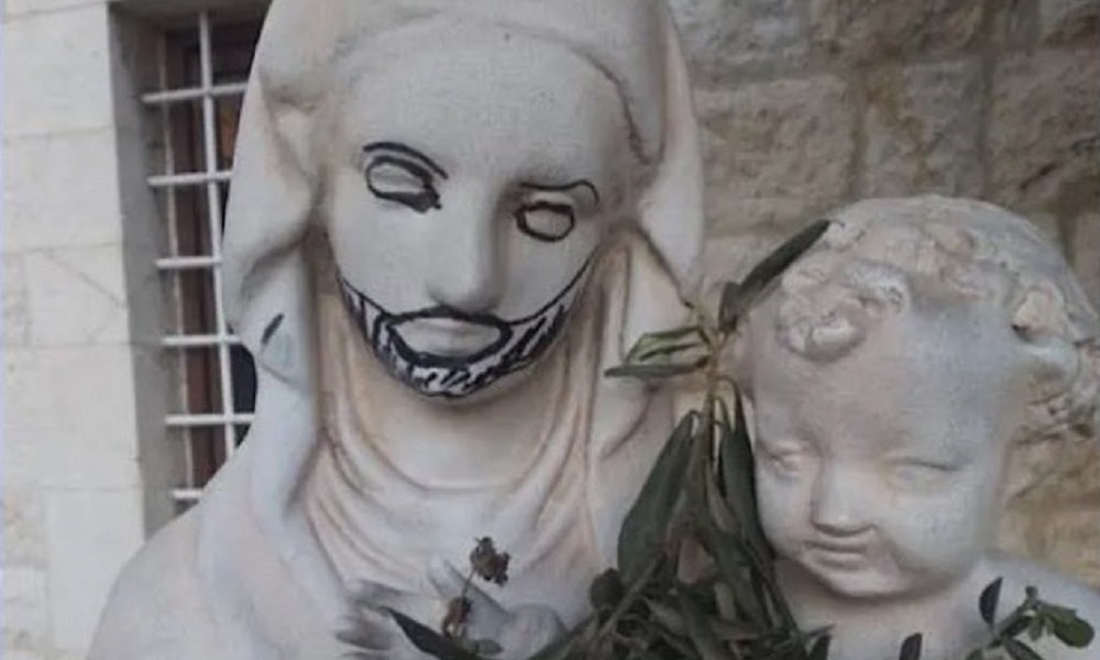 أقدم مجهولون على تشويه تمثال السيدة العذراء أمام كنيسة سيدة المعونات القديمة في زوق مكايل.