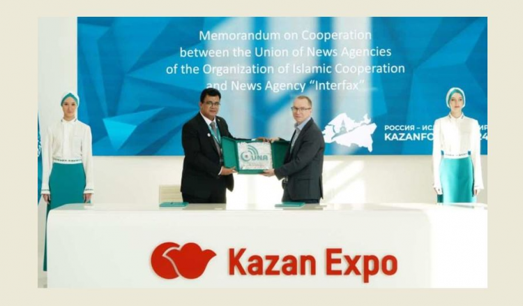وقَّع اتحاد وكالات أنباء دول منظمة التعاون الإسلامي (يونا)، مذكرة تعاون مع وكالة إنترفاكس الروسية، على هامش منتدى قازان 2024 المنعقد في مدينة قازان بتتارستان في روسيا الاتحادية.