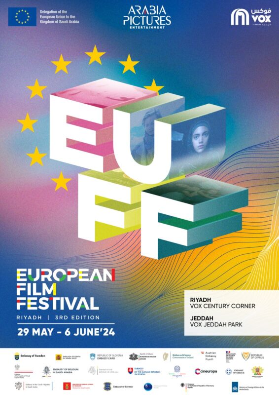 الرياض،23 مايو 2024: تعلن مندوبية الاتحاد الأوروبي بالرياض، بالتعاون مع سفارات الدول الأعضاء بالاتحاد الأوروبي ومجموعة الصور العربية للسينما، عن النسخة الثالثة لمهرجان السينما الأوروبية بالمملكة العربية السعودية. تنطلق فعاليات المهرجان في الفترة من 29 مايو وحتى 6 يونيو، وللمرة الأولى يتم تنظيم المهرجان في كلٍ من الرياض وجدة.