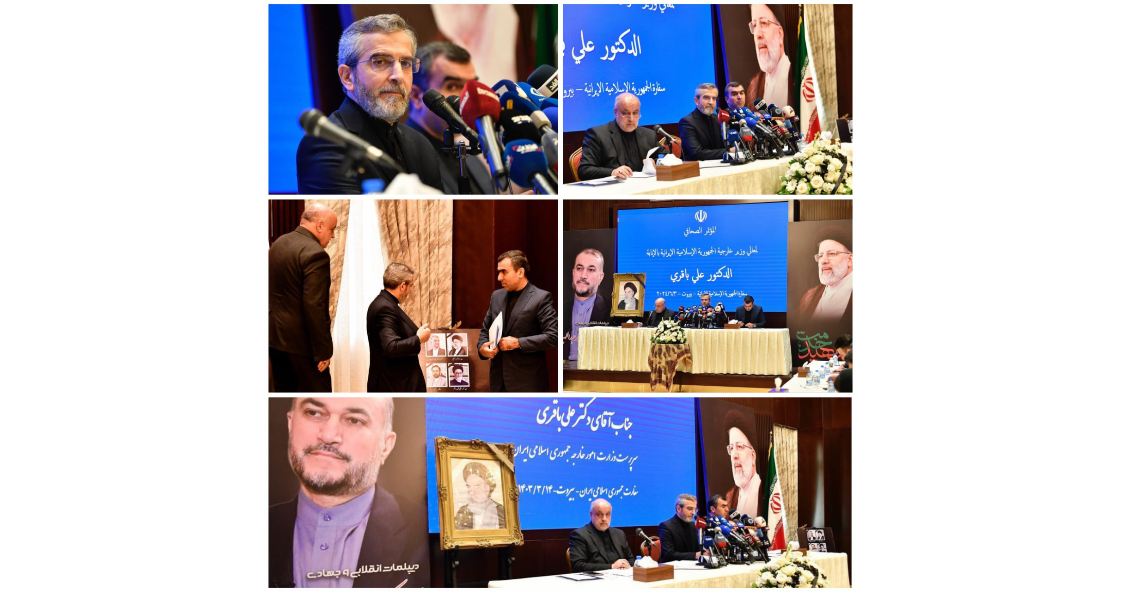 عقد وزير خارجية الجمهورية الإسلامية الإيرانية بالإنابة الدكتور علي باقري مؤتمراً صحفياً بعد انتهاء جولته على المسؤولين اللبنانيين، استهله بالقول: “إن جذور التعاون والتفاعل بين ايران ولبنان ضاربة في التاريخ، والمشاورات بين الجمهورية الإسلامية الإيرانية ولبنان قائمة بشكل مستمر، وأتيت إلى لبنان لأتقدم بالشكر والتقدير للبنان حكومة وشعبا ولكبار المسؤولين على تضامنهم معنا في حادثة استشهاد رئيس الجمهورية الإسلامية الإيرانية السيد ابراهيم رئيسي ووزير الخارجية الدكتور حسين أمير عبداللهيان ورفاقهما، وهذا التضامن تمثل برسائل التعزية واعلان الحداد لمدة 3 أيام في لبنان، وكذلك مشاركة رئيس الحكومة نجيب ميقاتي بتقديمه العزاء”.