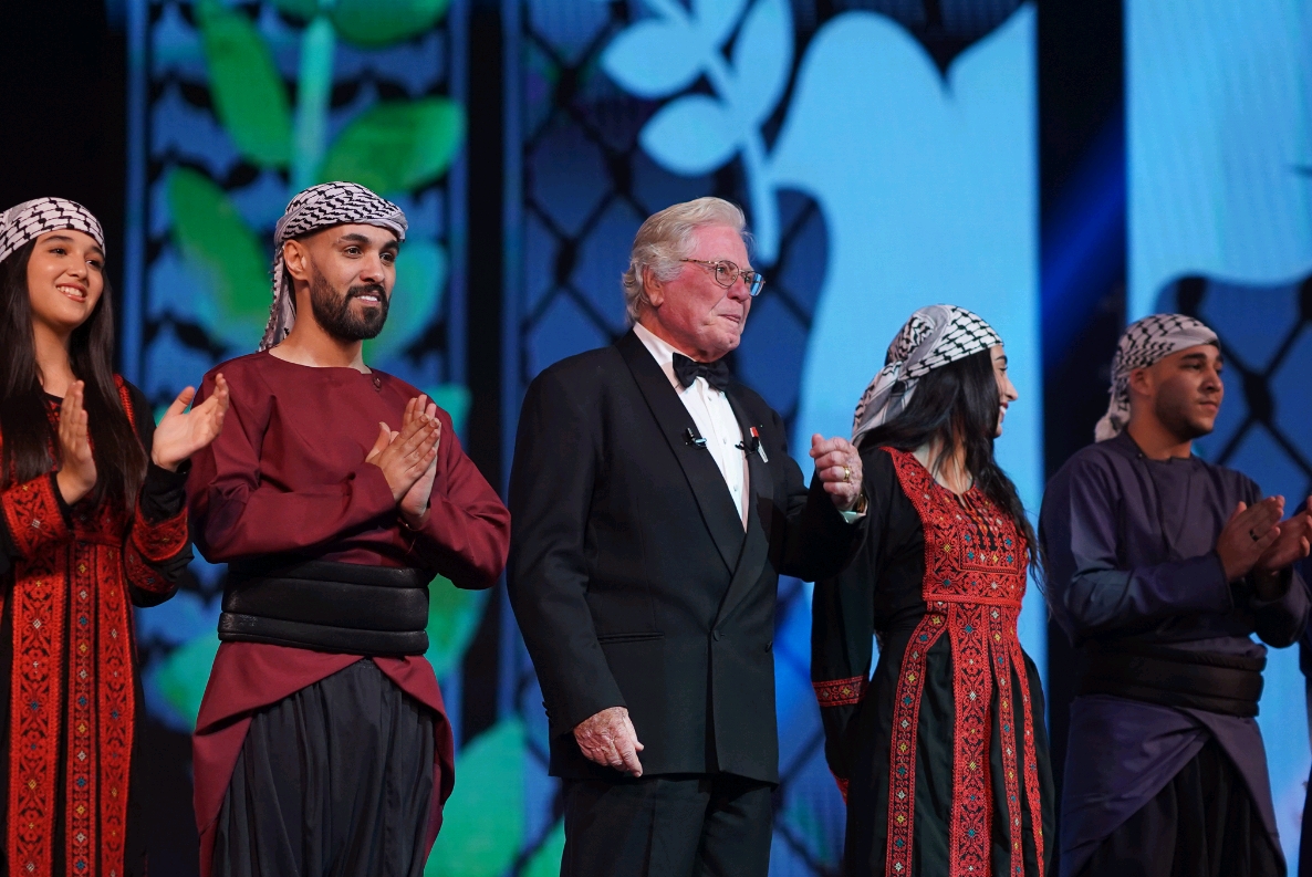 تلاها استعراض لفرقة “وطن للفنون الشعبية” الفلسطينية، وسط تفاعل الحاضرين، مثلما حدث في حفل افتتاح المهرجان في لافتة تضامنية من المهرجان مع أهل فلسطين، ليظهر بعدها حسين فهمي وهو يتوسط الفرقة وبعد العرض قدم الشكر للفرقة الذي أكد أنهم حضروا من غزة الشقيقة.