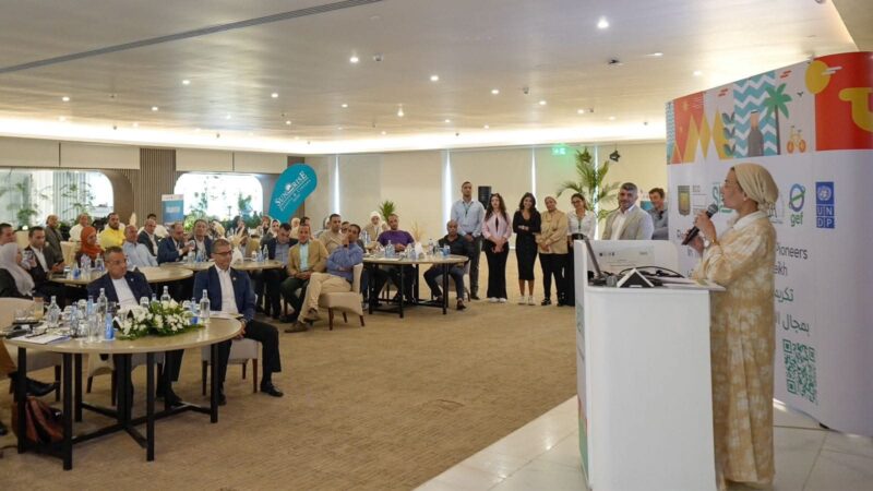 في إطار فعاليات احتفالية إطلاق مشروع تطوير قرية الغرقانة بمحمية نبق الطبيعية بمدينة شرم الشيخ، قامت الدكتورة ياسمين فؤاد وزيرة البيئة واللواء الدكتور خالد مبارك محافظ جنوب سيناء، بتكريم مجموعة فنادق صن رايز كأحد أهم رواد مستثمري السياحة في التنمية المستدامة بمدينة شرم الشيخ، وذلك خلال إحتفالية حضرها اليساندرو فراكستي الممثل المقيم لبرنامج الأمم المتحدة الإنمائي.