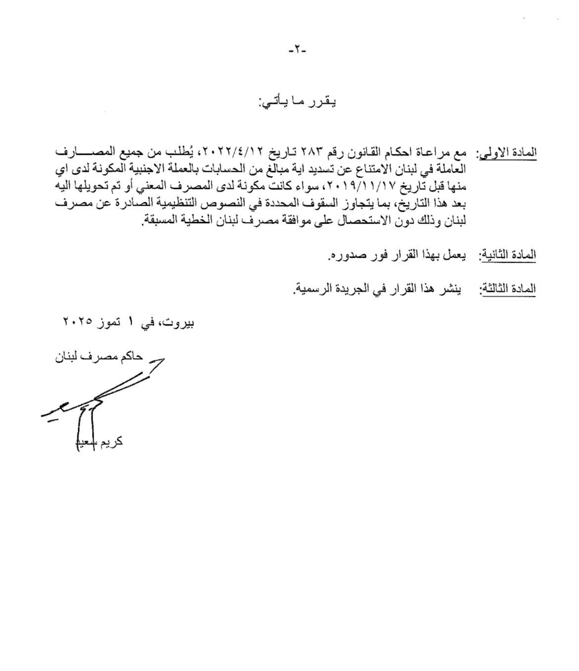 تعميم جديد من مصرف لبنان.. ماذا جاء فيه؟