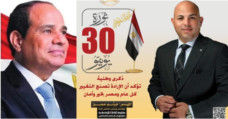 م. هيثم حسين: ثورة 30 يونيو أثبتت أن إرادة المصريين هي صاحبة الكلمة الفصل ولن تسقط أبدًا
