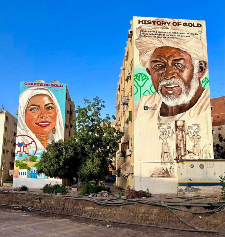 المشروع الأخير للثنائي في أسوان شمل أربع عمارات كل واحدة منها تحولت إلى لوحة حية تحكي قصة مختلفة. إحدى العمارات جسّدت شخصية الرجل النوبي الكبير في السن، كرمز للحكمة والتاريخ والحضارة. عمارة أخرى حملت ملامح الفتاة النوبية الأصيلة، بزيّها البسيط وابتسامتها التي تعبّر عن الجمال الصعيدي. عمارة ثالثة بعنوان “رمز النيل” تحكي عن رحلة النهر الخالد وتأثيره على الحضارة المصرية منذ آلاف السنين.