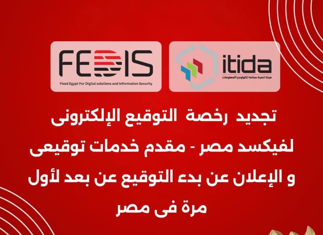 “فيكسد مصر” تعلن تجديد رخصة تقديم خدمات التوقيع الإلكتروني بعد حصولها على شهادة التصديق من إيتيدا