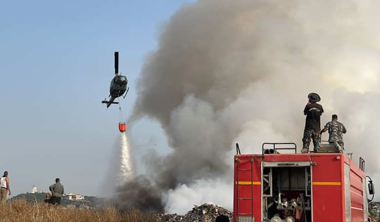 ساهمت طوافات تابعة للجيش في اخماد الحريق الذي اندلع في سفح ردميات بالقرب من معمل معالجة النفايات الصلبة في سينيق، إلى جانب فرق اطفاء بلدية صيدا والدفاع المدني.