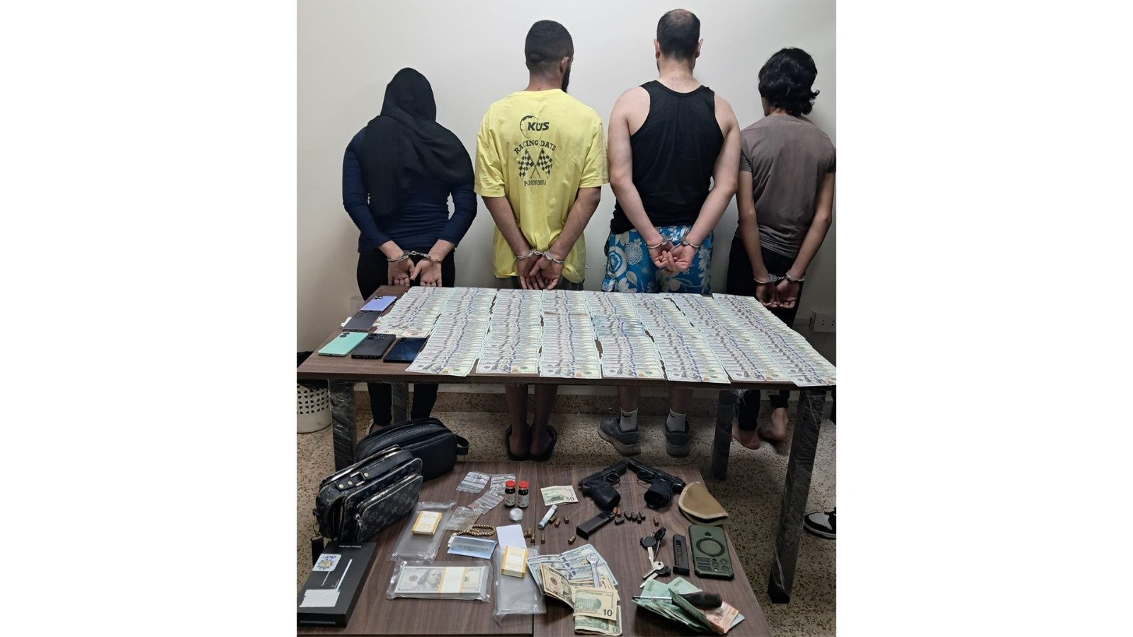 في محلة المكلس، حيث ضبط بحوزتهما مسدسان حربيان ومخدّرات وأموال مزيّفة، وقد تبيّن من خلال التحقيق أن دورهما كان يتمثل في استلام الأموال المزيّفة، ثم لقاء الضحية لاستلام الأجهزة الإلكترونية مقابل تلك الأموال.
