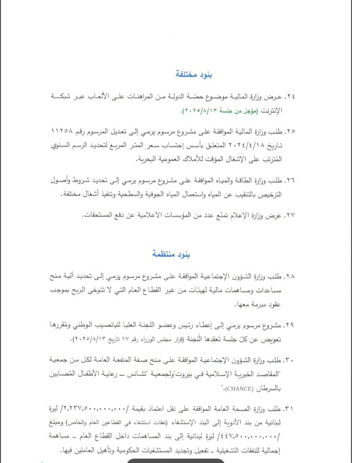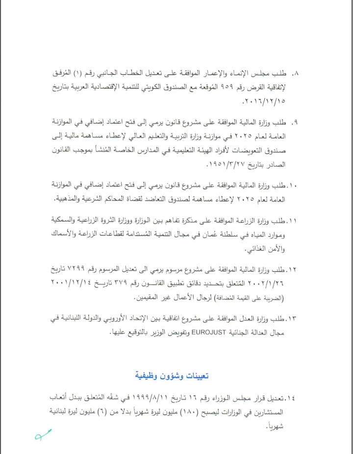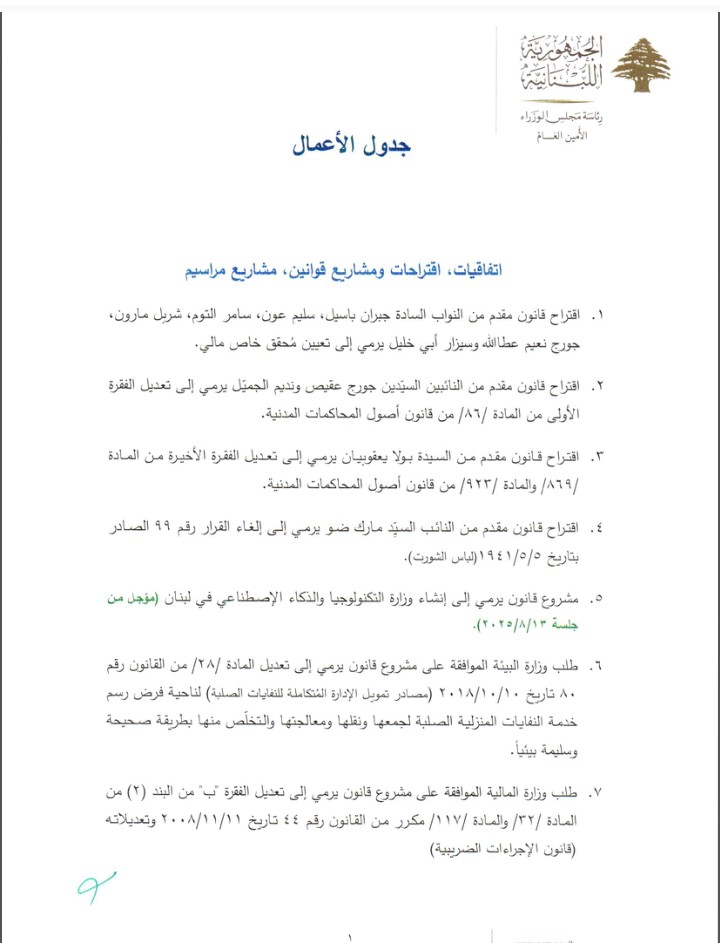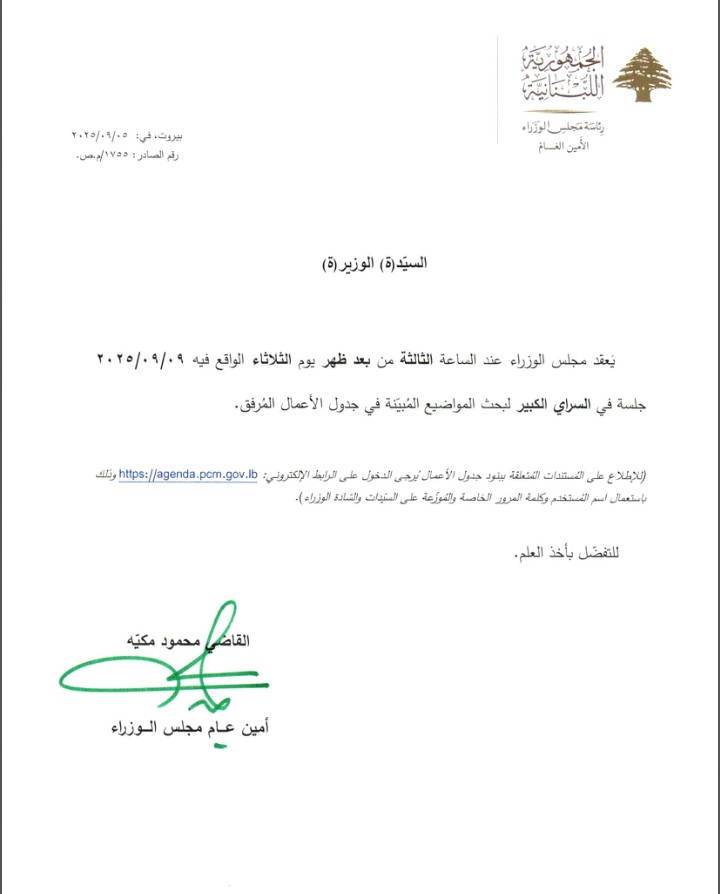 يعقد مجلس الوزراء عند الساعة الثالثة من بعد ظهر الثلاثاء في 9 الحالي، جلسة في السرايا الحكومية، للبحث في عدد من الملفات.