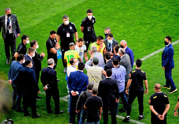 لم يُكتب للمباراة المرتقبة بين عملاقي الكرة الاميركية الجنوبية البرازيل والارجنتين ومن ضمنها المواجهة المثيرة بين الزميلين القديمين الجديدين ليونيل ميسي ونيمار ان تستمر اكثر من دقائق معدودة في ساو باولو فجر اليوم الاحد في تصفيات أميركا الجنوبية المؤهلة الى مونديال 2022، وذلك بسبب مخالفة بروتوكولات فيروس كورونا.