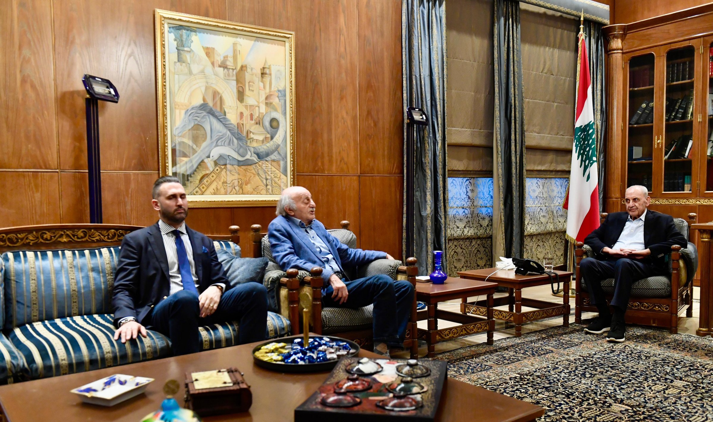 استقبل رئيس مجلس النواب نبيه بري، في مقر الرئاسة الثانية في عين التينة، الرئيس السابق للحزب التقدمي الاشتراكي وليد جنبلاط، بحضور رئيس كتلة “اللقاء الديمقراطي” ورئيس الحزب التقدمي الاشتراكي النائب تيمور جنبلاط.