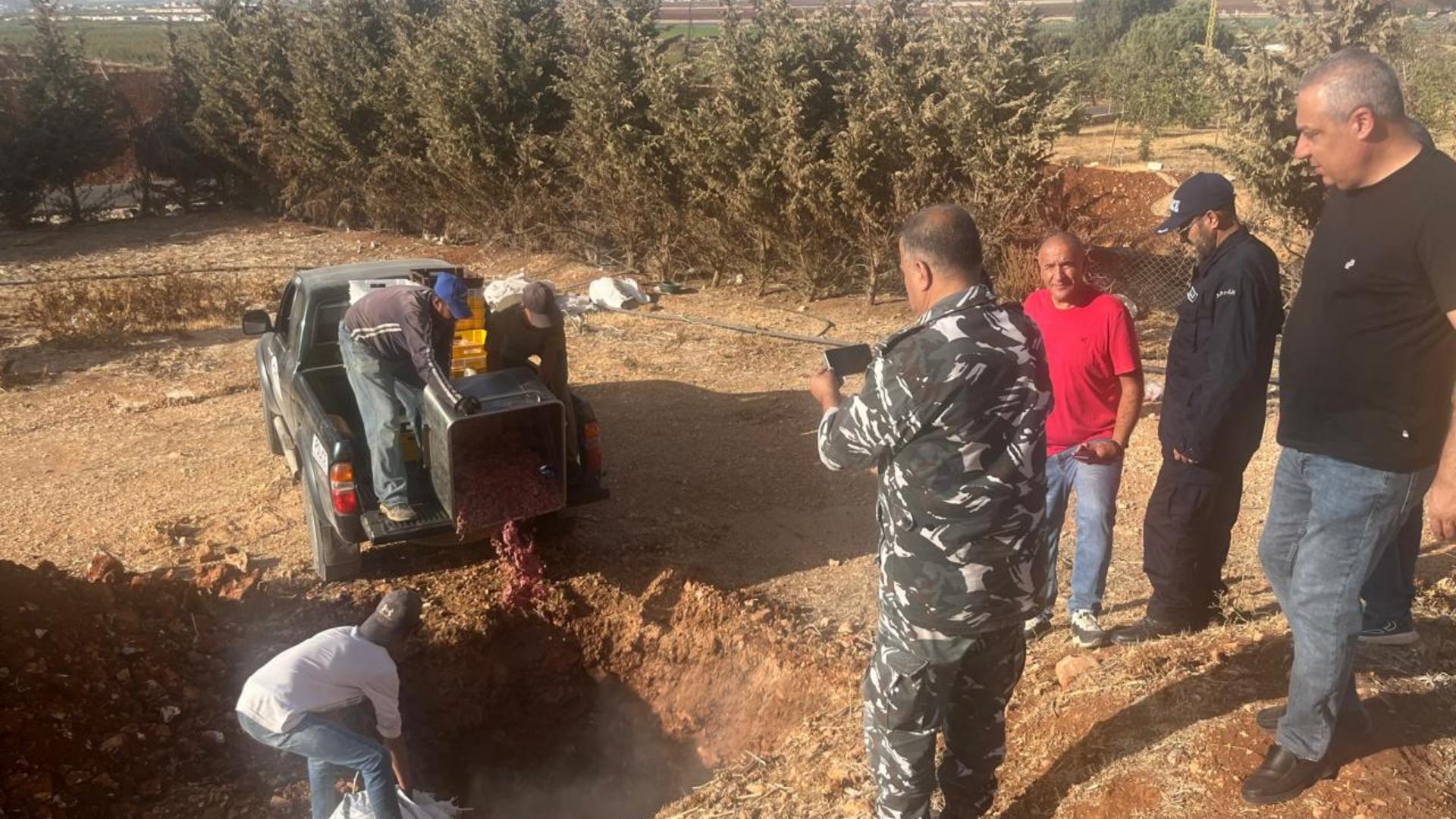 وحصلت عملية الاتلاف، وفق المعايير الصحية والبيئية، حيث تم حفر حفرة بعمق 3 أمتار، رميت فيها كميات الدجاج الفاسد التي يقارب وزنها 800 كيلوغرام، ثم أُضيفت فوقها مواد من الكلس وأُعيد طمر الحفرة بالكامل.
