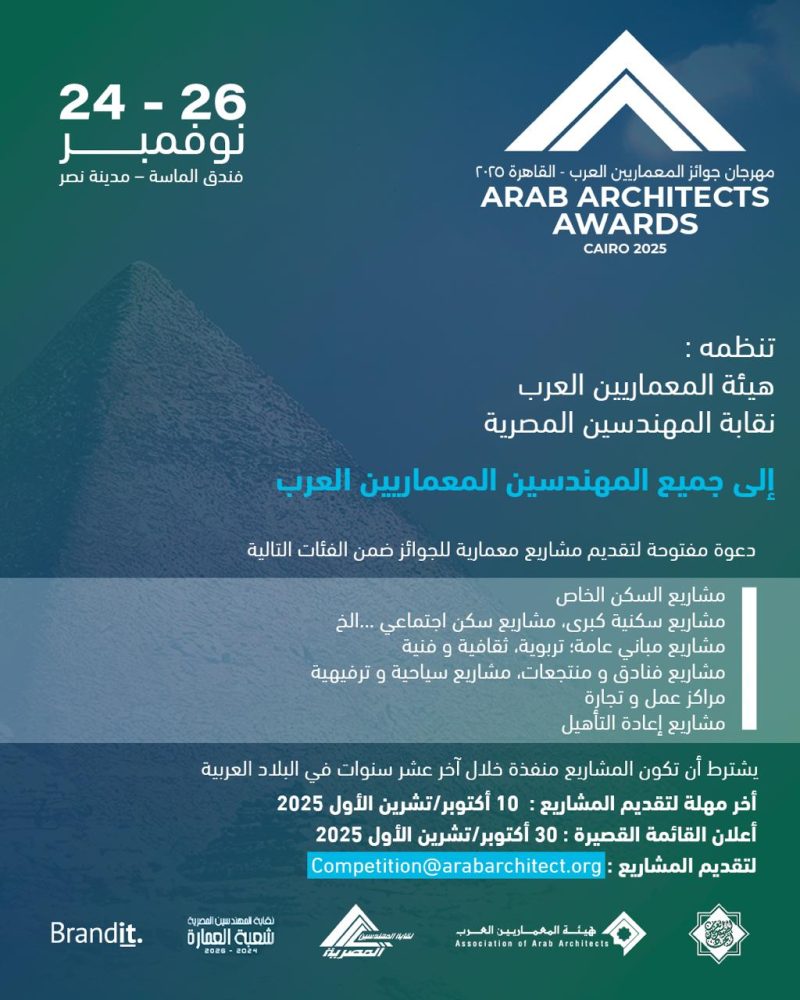 للمرة الأولى… مصر تستضيف النسخة الثالثة من مهرجان “جوائز المعماريين العرب” في نوفمبر المقبل
