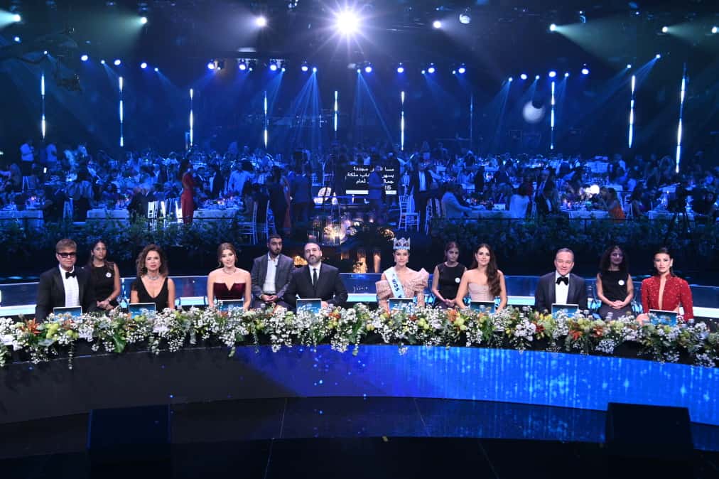 السهرة كانت حافلة بالفنّ والجمال، حيث تألّقت النجمة نانسي عجرم بثلاث إطلالات غنائية ساحرة ألهبت المسرح بأغنياتها المحبوبة وقدّمت لمسة لبنانية راقية تليق بالمناسبة. كما شهد الحفل حضور ملكة جمال العالم 2025 أوبال سوشاتا (Opal Suchata)، التي شاركت في تتويج الملكة الجديدة، ما أضفى بعداً عالمياً على الحدث.