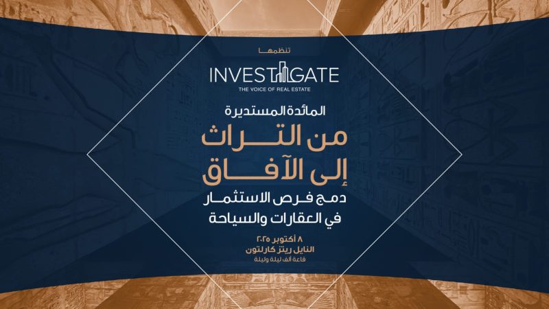 تستعد «إنفستجيت» لإطلاق النسخة السادسة والعشرين من مائدتها المستديرة، بعنوان: «من التراث إلى الآفاق: دمج فرص الاستثمار في العقارات والسياحة»، وذلك يوم الأربعاء الموافق 8 أكتوبر 2025، في تمام الساعة التاسعة صباحًا، بفندق «النيل ريتز كارلتون» – قاعة «ألف ليلة وليلة».