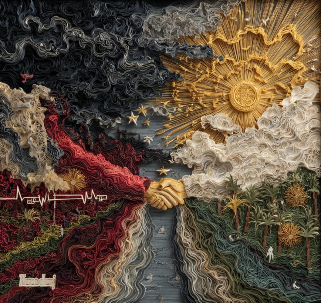 تتناغم الطبقات الدقيقة لتُعبّر عن اتحاد الوطنين بروحٍ واحدة، وعن المعاني العميقة للشكر والوفاء والولادة الجديدة بعد العتمة.