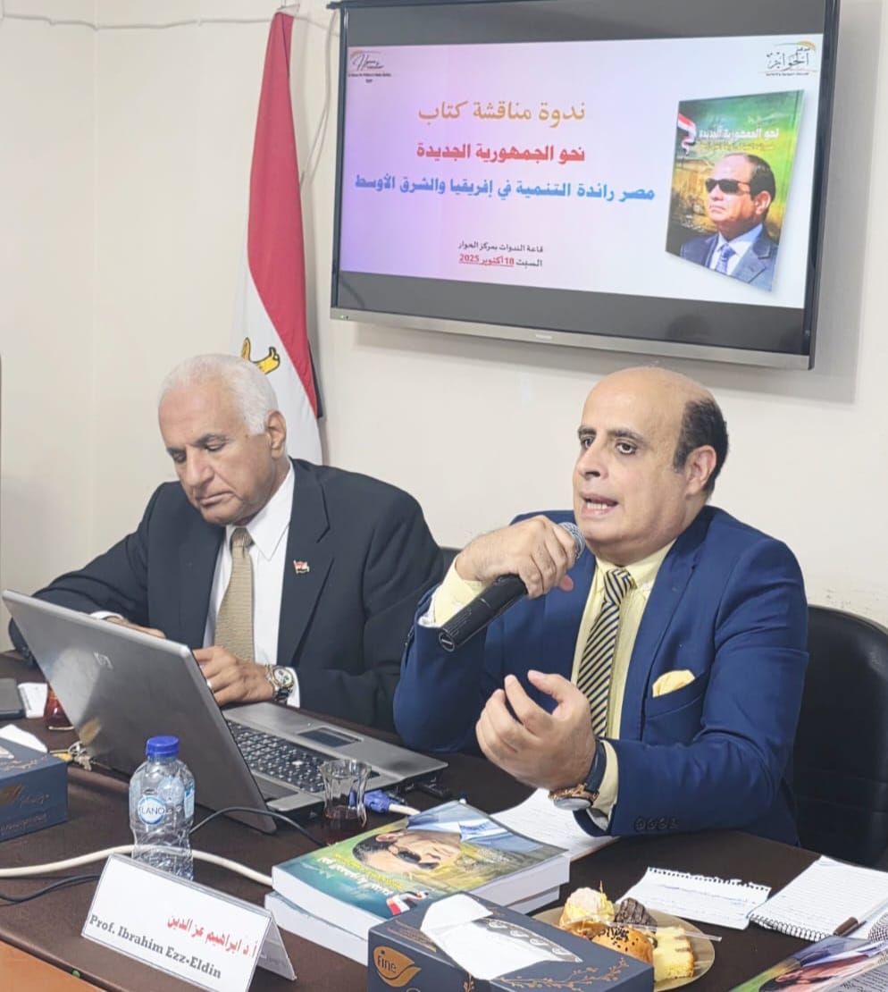 شهد مركز الحوار للدراسات السياسية والإعلامية ندوة فكرية موسعة لمناقشة كتاب “نحو الجمهورية الجديدة.. مصر رائدة التنمية في إفريقيا والشرق الأوسط” للمفكر والأستاذ الدكتور إبراهيم عز الدين، بحضور نخبة من الشخصيات العامة والخبراء في السياسة والاقتصاد والتنمية.