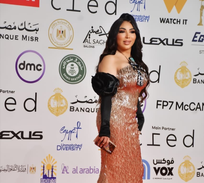 إطلالة فرعونية راقية.. غادة إبراهيم تتألق بـ”مفتاح الحياة” على السجادة الحمراء لمهرجان القاهرة