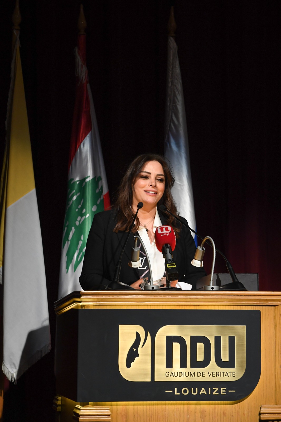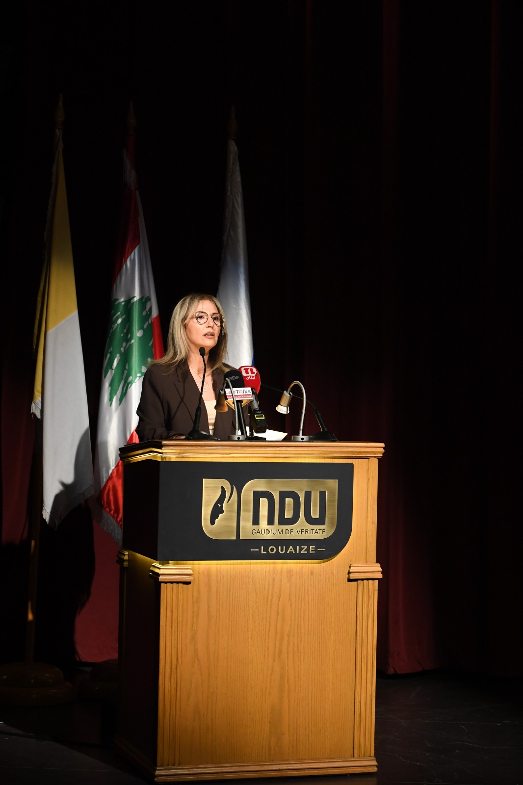 وأشكر أيضاً من القلب فريقَ العمل الذي أعدّ هذه الإحتفاليّة بدءً بكليّة الإنسانيّات وعلى رأسها العميدة الدكتورة ماريا بو زيد، ومدير قسم العلوم السمعية والبصرية في الجامعة الأستاذ بيارو حداد وفريق عملِه الذين شكّلوا طيلة الفترة الماضية خليةَ نحلٍ نفتخرُ بنتاجها”.