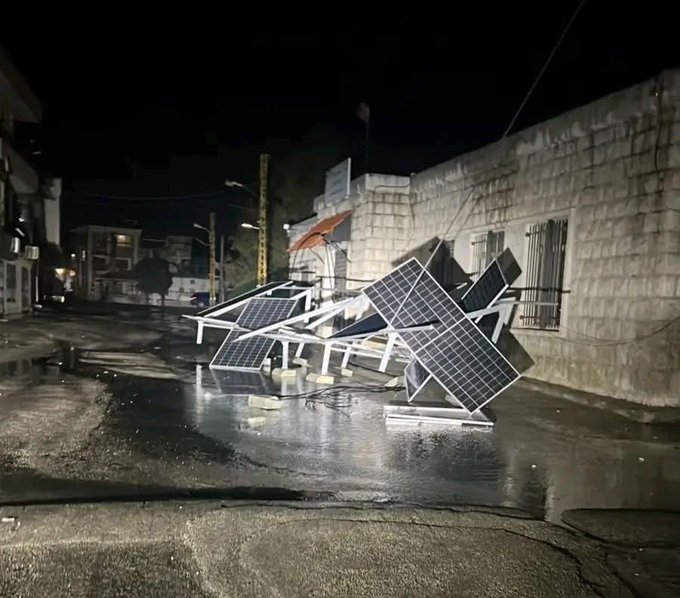 – التواصل مع فني مختص في حال وجود خطر. نشرت “اليازا” عبر صفحتها الرسميّة على “أكس” صورة تُظهر سقوط ألواح طاقة شمسيّة نتيجة الطّقس العاصف، أمام مدرسة متوسطة جب جنين الرسمية