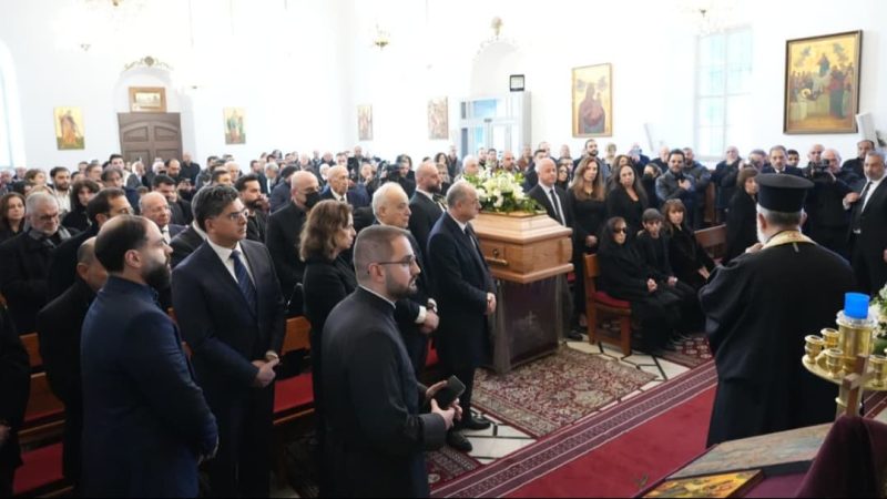 وكانت قاعة كنيسة رقاد السيدة غصت بالمعزين، تقدمتهم اللبنانية الاولى السيدة نعمت عون. كما حضر معزيا سفراء قطر ومصر وفلسطين، مطران بيروت للروم الارثوذكس الياس عودة، وعدد كبير من الفنانين وفاعليات.