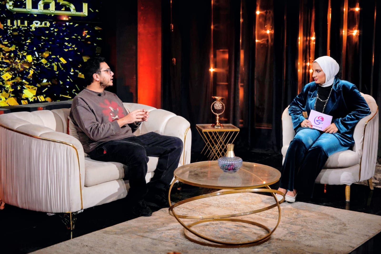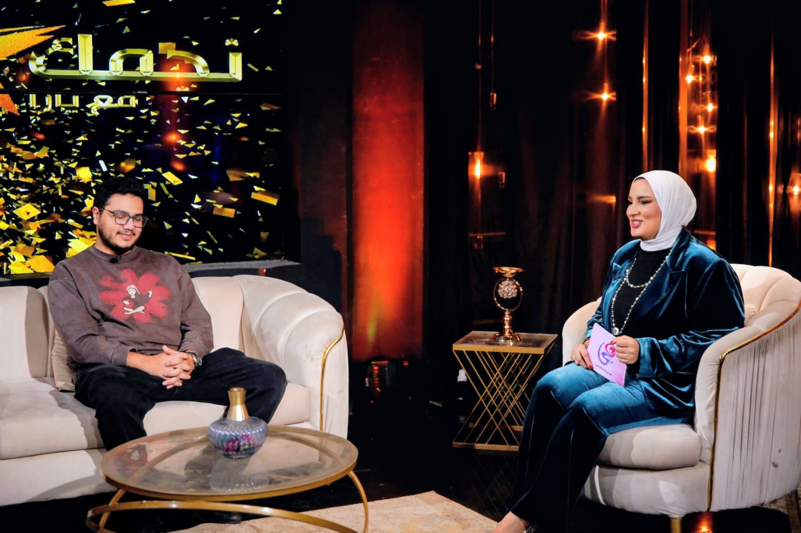 حلّ الفنان الشاب عمر محمد رياض ضيفًا على برنامج «نجمك مع يارا»، في حلقة مطوّلة كشف خلالها عن كواليس مشواره الفني، وردود الأفعال التي تلقاها على دوره في مسلسل «اتنين قهوة»، وضغوط الانتماء إلى عائلة فنية كبيرة، كما شهدت الحلقة مداخلة خاصة ومؤثرة من جدته، تحدثت خلالها عنه بصراحة ودعم واضح.