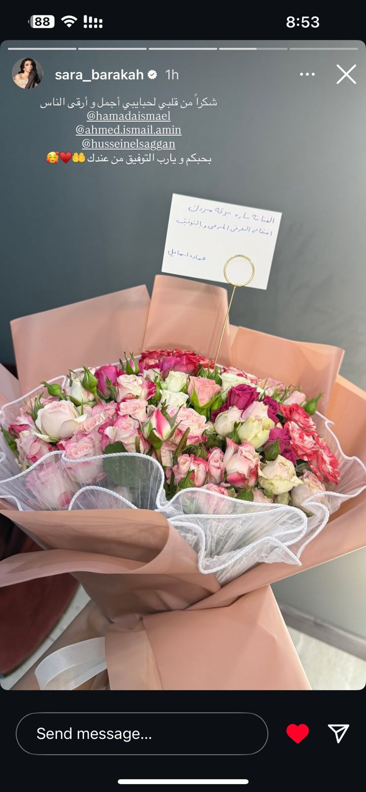 حمادة إسماعيل يهنئ أبطال «سمن على عسل» بالوورود بمناسبة افتتاح العرض
