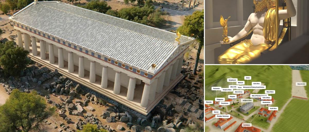 واحتوى الأخير على تمثال “زيوس”، وهو تمثال يبلغ ارتفاعه 41 قدماً من العاج والذهب، يجلس على عرش من خشب الأرز المطلي والمزخرف والذي يُعرف بأنه أحد عجائب الدنيا السبع في العالم القديم.